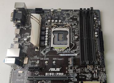 Scheda madre ASUS B150 PRO usata in buone condizioni. - Colore nero e argento. - Supporto DDR4. - LAN GUARD. - Anti-Surge. - SATA 6Gb/s.