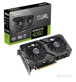 Vendo scheda grafica ASUS DUAL NVIDIA GeForce rtx 4060 EVO OC edition con meno Di un anno di vita. La vendo per bisogno di un upgrade in seguito ad altri miglioramenti della postazione da gaming. Gira perfettamente a 165 hz su titoli come Arc Raider, Fortnite, call of duty, apex etc etc. Per info contattarmi in privato. Luca