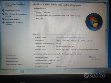 Processore Intel atom, 2gb di RAM, HD meccanico 150gb, batteria presente con 1h di autonomia, completo di scatola originale e alimentatore da parete.