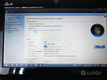 Asus Eeepc HD 256Gb RAM 1Gb 10" Windows 7 con licenza