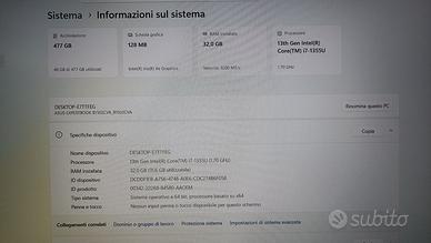 Notebook ASUS ExpertBook B1502CV Famiglia processore Intel® Core™ i7 Numero di core del processore 10 Frequenza del Processore Turbo Massima Performance-core 5 GHz Cache processore 12 MB Generazione del processore Intel® Core™ i7 di 13a generazione MEMORIA RAM 32GB 3200 MHZ DDR4-SDRAM Dimensioni diagonale schermo 39, 6 cm (15.6") Risoluzione del display 1920 x 1080 Pixel Tipologia HD Full HD tastiera retroilluminata Capacità totale di archiviazione 512GB SSD M2 Sistema operativo incluso Windows 11 Pro ALIMENTATORE ORIGINALE BATTERIA EXCELENTE -NON SPEDISCO -NO PERDITEMPO -SOLO RITIRO A MANO -PREZZO TRATABILE 350