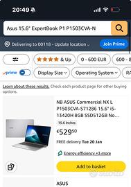 Asus 15.6" ExpertBook P1 P1503CVA-NJO607X Windows 11 Pro 9ONXO881 Comprato una settimana fa e mai utilizzato Ritiro su latina/cisterna/doganella