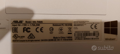 Vendo notebook ASUS F402S per ricambi, è praticamente nuovo ma non si accende completo di scatolo e tutti i componenti ad eccezione del hard disk