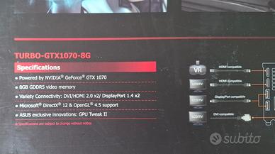 Vendo ASUS GeForce GTX 1070 Turbo 8GB GDDR5, modello blower originale ASUS.