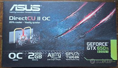Vendo Asus Geforce GTX-650 Ti Boost, 2 GB DDR5, DirectX 11, 3D Vision. Ottima per gaming e programmi di grafica come Photoshop, Illustrator, Autocad, ecc... per alleggerire il carico di lavoro della CPU del computer.