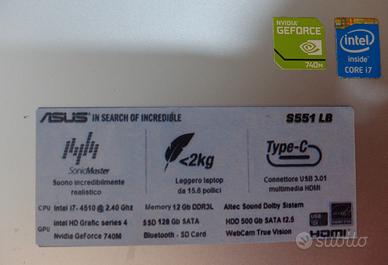 Asus S551 pcportatile ottimoa estetica e funzionalità. Intel i7-4510