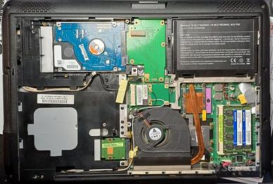 Portatile DA RIPARARE: sicuramente guasti batteria ed Hard Disk. Il resto da verificare. Intel Dual core 2.2GHz.RAM 4096MB. Scheda video Nvidia Geforce G205M 512MB. DvD. Rete Lan e wireless. Alimentatore.