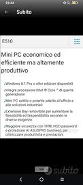 Asus mini PC notebook completo di alimentatore e cavo di rete se poi necessitate di tastiera e mouse è possibile aggiungerli, si può adattare a qualunque monitor,TV,smart TV,LCD,plasma,RCA, scart,USB,HDMI,super HDMI, mini USB, micro SD, ....