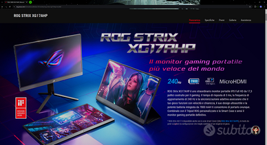 Vendo monitor portatile in descrizione, in garanzia asus con tutti gli accessori, per tutte le specifiche tecnniche: sito Asus Rog Strix modello XG 17AHP. Completo di borsa ufficiale Rog per il trasporto e tutti gli accessori.