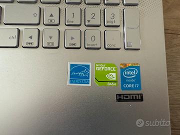 Vendo Asus notebook con caratteristiche visibili in foto. Cavo e alimentatore originali, batteria ok. Compresa nel prezzo borsa Tucano per trasporto pc.