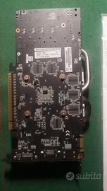 Scheda video ASUS con chipset Nvidia Geforce GTX 550 Ti con 1 GB GDDR5 e con uscite video DVI, VGA e HDMI il bus è standard PCI Express® 2.0. Questo modello di ASUS è leggermente spinto come clock superando la frequenza standard del chipset nvidia grazie all’ottima dissipazione con heat pipe con base in rame del sistema di raffreddamento ed alle memorie di qualità. Ottime condizioni estetiche, perfettamente funzionante e silenziosa.