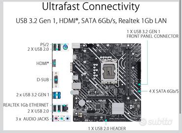 ASUS PRIME H610M-K D4 Scheda Madre MATX, Intel H610, LGA1700, DDR4, PCI 4.0, Realtek 1Gb Ethernet, Realtek 7.1 Surround, 1xM.2, 4xSATA 6GB/s, USB 3.2 Gen 1, Armoury Crate, Nero