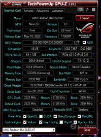 Vendo scheda video "ASUS ROG Strix AMD Radeon RX 6650 XT OC Edition" acquistata a marzo 2023 per upgrade a nuovo modello. La scheda ha sempre lavorato con le impostazioni di fabbrica, bios e driver ufficiali, non è mai stata usata per mining. Disponibile senza spesa aggiuntiva (solo con consegna a mano) alimentatore DeepCool DN550 usato per alimentare questa scheda negli ultimi due anni