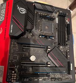 ASUS ROG STRIX B550-E GAMING per AMD AM4 con scatolo manuale ed alcuni cavi. Vendo per acquisto PC nuovo. La scheda madre era stata acquistata per sopperire all'assenza della mia Asus Pro Art B550 Creator quando è andata in assistenza (in vendita in altra inserzione), è stata montata ed usata fino al 25 marzo. la scheda wifi è stata rimossa ed è andata persa, poiché usavo una scheda pci-e più veloce. usata sempre per montaggi video e giochi sporadici. probabilmente ha qualche difetto poiché non sono mai riuscito a montare le ram secondo lo schema asus ma mettendole nello slot 1 e 2 oppure 3 e 4. Non mi sono mai applicato poiché doveva essere una soluzione temporanea. presenta un graffio su delle piste che possono essere ripristinate senza problemi. viene venduta con questi difetti, non accetto resi.
