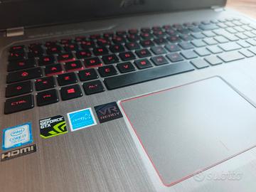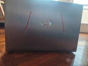 PC da gaming ASUS ROG Strix GL502V. usato poco (come secondo PC, avendo anche il fisso) tenuto maniacalmente, nessun segno di usura, perfetto. Pagato all'acquisto 1,400 Eur. CARATTERISTICHE TECNICHE: Processore: Intel Core i7-6700HQ Scheda Video: NVIDIA GeForce GTX 1060 con 6GB di memoria dedicata. RAM: 16GB DDR4. Archiviazione: SSD 128GB + HDD 1TB (L'SSD garantisce un avvio di Windows in pochi secondi). Display: 15.6 pollici Full HD (1920x1080) antiriflesso Tastiera: Layout Italiano, retroilluminata in rosso (tasti perfetti, mai usati per gaming intenso senza tastiera esterna).