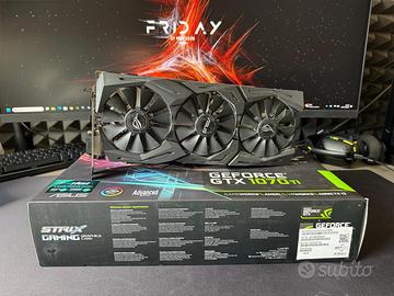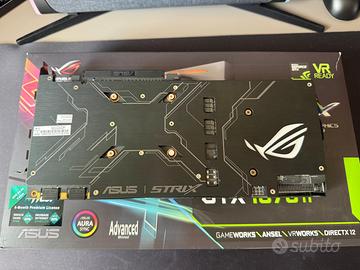 Vendo scheda video ASUS ROG Strix GTX 1070 Ti (versione Advanced A8G), una delle migliori di questa serie. La scheda funziona perfettamente, la cambio solo per passaggio a modello superiore. MAI APERTA: La scheda ha ancora il suo sigillo originale sulla vite, quindi non è mai stata manomessa o riparata. TUTTO INCLUSO: Ho ancora la sua scatola originale, gli accessori e la busta antistatica. CONDIZIONI: La scheda è tenuta bene, ha solo un po' di polvere dovuta al normale utilizzo (come si vede dalle foto), ma le ventole sono silenziose e girano perfettamente.