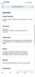 Vendo per inutilizzo ASUS ROG Strix Scar 15 (Modello G533QS-HF193T), un computer dalle prestazioni estreme acquistato il 12/07/2021 per necessità di rendering 3D durante il percorso in Accademia di Belle Arti.