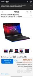 vendo ASUS ROG STRIX Scar 16" WQXGA ULTRA 9 275HX 2TB SSD 32GB W11P RTX 5090 240Hz