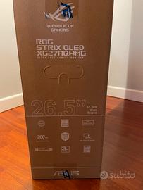 **Monitor Gaming ASUS ROG Strix OLED XG27AQDMG – Pari al Nuovo** Vendo monitor ASUS ROG Strix OLED XG27AQDMG in condizioni **pari al nuovo**, utilizzato pochissimo (**circa 300 ore totali**). 🔹 **Condizioni** * Ancora con **pellicola posteriore** * **Scatola originale presente** * Incluso **braccio/supporto** * Nessun difetto, nessun segno d’usura 🔹 **Acquisto e Garanzia** * Data di acquisto: **28 gennaio 2026** * **3 anni di garanzia ufficiale** 🔹 **Caratteristiche principali** * Pannello **OLED WOLED (White OLED con subpixel RGB)** * Dimensione **27"** * Risoluzione **QHD (2560x1440)** * Refresh rate fino a **280Hz** * Tempo di risposta **0.03 ms** * Compatibile **G-Sync / FreeSync** * Qualità visiva top (contrasto infinito, neri perfetti) 💰 **Prezzo: 600€ leggermente trattabile** 📍 **Solo consegna a mano** (no spedizione) --- #monitor #gaming #oled #woled #asusrog #rogstrix #280hz #qhd #pcgaming #setupgaming #gamer #fps #highend #tech #vendita #affare