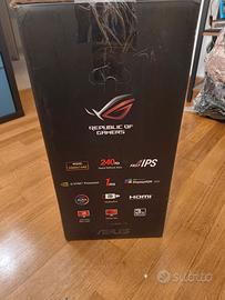 Vendo splendido monitor da gaming ASUS ROG Swift PG279QM per passaggio a configurazione differente. Il monitor è in condizioni estetiche e funzionali perfette, senza pixel bruciati o backlight bleed eccessivo. È uno dei migliori monitor 1440p mai prodotti, ideale per eSports e gaming competitivo grazie alla combinazione di risoluzione e fluidità estrema. Caratteristiche principali: Pannello: 27 pollici Fast IPS (colori spettacolari e angoli di visione ottimi). Risoluzione: WQHD (2560 x 1440). Refresh Rate: 240Hz nativi. Tempo di risposta: 1ms (GtG). G-Sync: Modulo hardware NVIDIA G-Sync integrato (non solo "compatible"). Reflex Latency Analyzer: Per misurare la latenza del sistema in tempo reale. HDR: Certificazione DisplayHDR 400. Stato del prodotto: Completo di scatola originale e imballaggi. Inclusi tutti i cavi (Alimentazione, DisplayPort, USB). Tenuto in ambiente non fumatori, pulito regolarmente. Disponibile per qualsiasi prova (se scambio a mano) o spedizione tracciata e sicura tramite la piattaforma.
