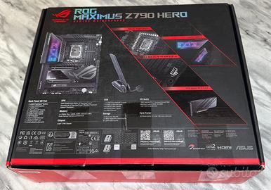Vendo per passaggio a nuovo progetto bellissima scheda madre ASUS ROG Maximus Z790 Hero, il top di gamma per prestazioni, overclock e design. Supporta CPU di Intel 12ª, 13ª e 14ª Gen La scheda è in condizioni funzionali perfette, solo leggeri difetti estetici, è stata aggiornata all’ultima versione del BIOS per risolvere i problemi di instabilità su alcune CPU. VALUTO OFFERTE