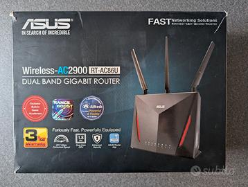 Vendo Router Wireless ASUS RT-AC86U Ac2900 Dual-Band Gigabit 802.11Ac, Mu-Mimo, Aiprotection, 3G/4G Support, Aicloud, WiFi 5 AC DualBand Perfettamente funzionante. Confezione originale