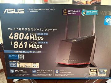 WiFi 6 AiMesh WiFi Gaming Router Dual Band. Router come nuovo. Utilizzato con provider fibra Tim e Navigabene senza riscontrare alcun problema. Visto che giustamente mi è stato chiesto piu volte, la scatola è in Giapponese perche l’ho acquistato nel 2024 quando vivevo a Tokyo