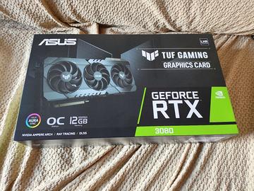 Scheda grafica ASUS RTX 3080 TUF GAMING, versione OC (overclock di fabbrica), 12GB VRAM (non 10GB come nella versione normale). Condizioni eccellenti, scheda estremamente silenziosa e rispettosa delle temperature: mai oltre i 60°C anche in estate. Costruita senza risparmio, è una scheda di un certo "peso". Vendo per passaggio a categoria superiore. Prezzo leggermente trattabile. No scambi o permute.