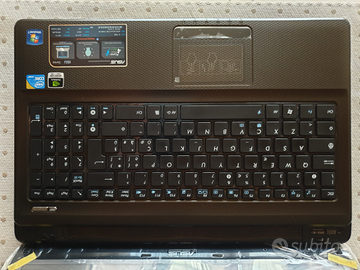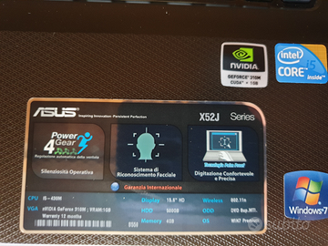 PC marca ASUS, modello X52J, display 15.6, intel core, memoria 4 GB, HDD 500 GB, scheda video NIVIDIA GEFORCE 310M, sistema operativo windows7 aggiornato al 10, 4 porte usb, porta per scheda sd lettore DVD. batteria al 50%. Come nuovo nessun segno di usura, schermo con pellicola originale. Non spedisco, scambio a mano.