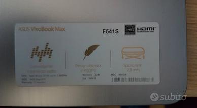 ASUS Sonic Master VivoBook Max F541S CPU Intel 4Core 3710 dvd sup memory 4 gb os win10 hdd 500 gb Pentium Nvidoa geforce