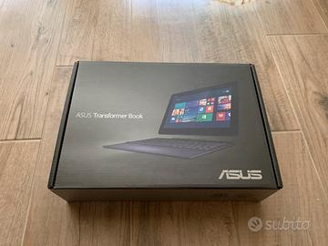 Asus T100. Computer portatile trasformabile. La tastiera puo essere staccata per utilizzarlo come un tablet. Windows 10 installato (possibile reinstallazione). 32 GB di memoria interna, espandibile tramite slot micro SD integrato. Compresa custodia non originale. Scatola originale. Caricatore originale.