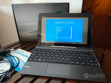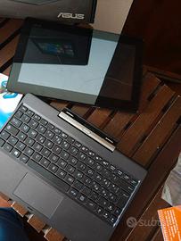 Notebook/ tablet modello T100TAF con tastiera removibile. Schermo rotto e touch screen non più funzionante. Completo di scatola e caricatore originale (filo leggermente rotto) Eipristinato ai dati di fabbrica.
