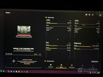 Tutto nella scatola originale. Non ho nemmeno toccato gli adesivi originali TUF e quelli di fabbrica sul portatile. Usato principalmente con tastiera e monitor esterni, quindi non ci sono impronte di mani sul portatile e anche lo schermo è rimasto intatto. Me ne sono preso cura con molta attenzione, ho recentemente cambiato la pasta termica con Arctic MX-6, che è migliore di quella di fabbrica. Windows originale.