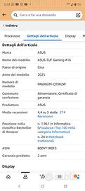VENDO COME DA TITOLO, NOTEBOOK ASUS TUF 16' GAMING (2025) ,AMD RYZEN 260 7°GENERAZIONE CON GEFORCE RTX 5060 8 GB DDR 7,MEMORIA RAM 16 GB DDR5 ESPANDIBILE FINO A 64 GB,SSD NVME DA 1 TB,DISPLAY 16' 2,5 K WQXGA (2600*1560)165 HZ DI REFRESH.TASTIERA ,RGB,SOUND BOOSTER E TANTO ALTRO.