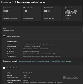 Notebook per gaming con caratteristiche e performance straordinarie. Tutte le dotazioni sono indicate nelle foto. Da tenere presente il disco SSD ad alta velocità da 1TB e la ram da 32GB. Gira perfettamente persino il Flight Simulator. Condizioni strepitose. Astenersi perditempo. Chiamare il 328 724 11 02