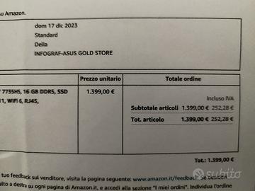 Vendo portatile notebook da gaming , studio e lavori professionali , in condizioni pari al nuovo , modello A17 FA707NU schermo 17.3" IPS 144Hz G-SYNC , per info contattatemi , non spedisco