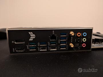 Vendo scheda madre Asus TUF x670e usata come banchetto di prova per processori e GPU. La scheda è completamente funzionante con alcuni segni di usura, come si può vedere in foto il socket è a posto, i PIN in linea e senza nessun problema. Purtroppo rimuovendo svariate GPU è capitato un episodio in cui è stato sforzato il gancio del PCI rompendo la parte che stringe la GPU al connettore, ovviamente una volta montata la scheda e fissata con le viti al case non ci sono problemi di funzionamento. Servirà un nuovo pad termico per l'ssd principale perché si è staccato. La scheda com'è da foto è completamente funzionante e performante, presente il copri socket, la minuteria del dissipatore stock e l'antenna Wi-Fi Asus. No perditempo, prezzo non trattabile.