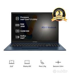 ASUS Vivobook 15 Notebook con Monitor da 15.6" Anti-glare, 60Hz, Intel® Core™ i7-1355U, RAM 16GB, 512GB SSD, Windows 11 Home.