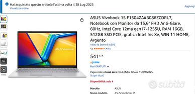 acquistato il 28 luglio 2025, vendo, completo di imballaggio asus, per passaggio ad apple.