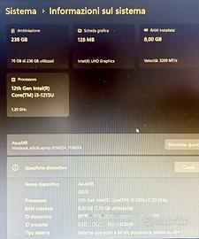 Vendo ASUS VivoBook 15 (F1502ZA-EJ2048W) - PERFETTE CONDIZIONI 💻 Come nuovo, zero graffi, sempre usato con cura 🔋 Batteria ok (82 cicli) ⚡ Caricatore originale incluso 📦 scatola originale non disponibile Scontrino acquisto disponibile (giugno 2024) Specifiche: • Intel Core i3-1215U • 8 GB RAM • 256 GB SSD • Schermo 15.6” Full HD • Windows 11 Home originale No permute. Spedisco ma preferisco scambio a mano.