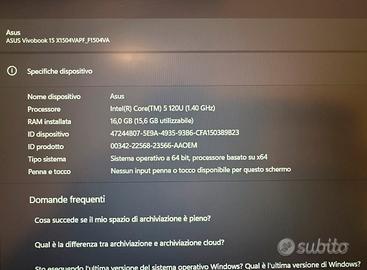 Vendo ASUS Vivobook 15 modello X1504VA, acquistato il 04/12/2024 e ancora coperto da garanzia ufficiale.