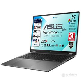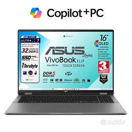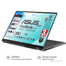 ASUS Vivobook 16 FLIP Limited Edition , Intel® Core™ Ultra 7 258V, Intel Arc Pro, Display OLED Touchscreen 16" FHD+, Ram DDR5 32Gb, SSD 1Tb, Win 11, Wi-Fi 7, bt 5.4, tastiera retroilluminata, Usb Type-C, inclusa Asus Pen, Garanzia 3 Anni
