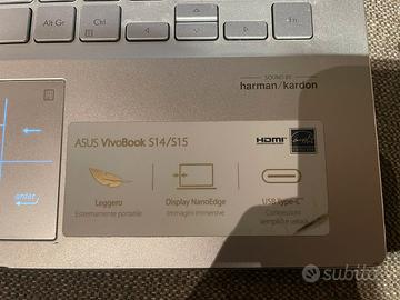 Si tratta di un Asus vivobook modello S433F, acquistato nel 2020 (prezzo originario 800€). Processore Intel Core i5 decima generazione, RAM archiviazione 477 Giga, scheda grafica 128 Mega, RAM installata 8 Giga. Ottimo sistema audio harman/kardon. Per quanto riguarda lo stato estetico: lievemente rovinato/scolorito agli angoli. Accessori inclusi: caricatore.