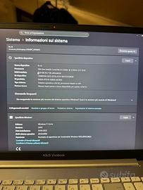 Vendo Asus Vivobook 16" Modello: N7600PC-KV034T acquistato 01/10/2022 in ottime condizioni e perfettamente funzionante. completo di scatola originale , cavi ed alimentatore . Batteria 306 cicli. queste le principali caratteristiche: processore Intel® Core™ i5-11300H memoria: 16 GB DDR4 saldata su scheda. scheda grafica: NVIDIA® GeForce® RTX™ 3050 Laptop GPU Memoria: 4GB GDDR6 schermo: 16.00 pollici Risoluzione: 2560x1600 - Dettagli: WQXGA, NO Glare, IPS, 120Hz. Pagato euro 873,00 ottobre 2022.