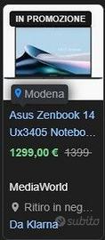 Metto in vendita il mio ASUS Zenbook 14 OLED (modello UX3405), un concentrato di potenza e design in condizioni estetiche e funzionali pari al nuovo. Il computer è stato trattato con cura maniacale, non presenta graffi, segni di usura o difetti hardware.