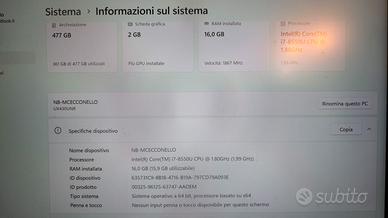Processore Intel Core i7-8550U 4c/8t 4 x 1.8 - 4 GHz, Kaby Lake Refresh Scheda grafica NVIDIA GeForce MX150 - 2048 MB VRAM, Core: 1468 MHz, RAM: 6008 MHz, GDDR5, 382.84, Optimus Memoria 16 GB, 1200 MHz, 10-10-10-28, Dual-Channel Schermo 14.00 pollici 16:9, 1920 x 1080 pixel 157 PPI, NV140FHM-N62, BOE0718, IPS, lucido: no Scheda madreIntel Kaby Lake-U iHDCP 2.2 Premium PCH Harddisk SanDisk SD8SN8U512G1002, 512 GB Peso 1.32 kg, Alimentazione: 230 gr