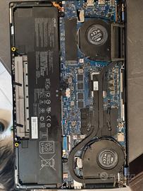 Asus ZenBook UX533FTC guasto non funzionante, per ricambi. Mi é stato dato così, inserendo un caricabatterie si accende per qualche istante la luce di ricarica, se provo ad avviarlo il led bianco si accende per pochi secondi per poi spegnersi. Ha un processore Intel core i7 di decima generazione e una Scheda video dedicata Nvidia GeForce GTX , 16 GB RAM saldate su scheda madre, non è presente il caricabatterie e l'ssd. Ottimo per ricambi come batteria, display completo e cover. Non fatemi domande in merito tutto quello che so é stato scritto, non conosco la storia del PC.