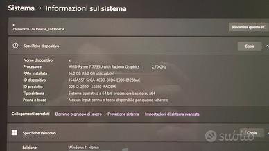 Vendo il mio ASUS ZenBook oled 15 , un laptop sottile e potente. L'ho usato pochissimo perché avevo anche un computer aziendale. Nessun segno estetico di usura. Acquistato a febbraio 2024 a € 1099. Specifiche: • Processore AMD Ryzen 7 7735U • grafica AMD Radeon • 16 GB di RAM - multitasking fluido • SSD da 512 GB - avvio rapido e trasferimenti dati veloci • Schermo Full HD da 15,6 pollici • Windows preinstallato e pronto all'uso • Connettività completa: USB-C, USB-A, HDMI, Wi-Fi, Bluetooth • Chassis sottile ed elegante - serie ZenBook Condizioni: ottime / eccellenti Venduto con caricatore originale