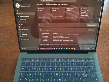 - Processore Qualcomm Snapdragon XX1 26 100 - Scheda grafica Qualcomm Adreno™ Onboard - RAM 16 GB - 1 TB SSD - Schermo OLED da 14", 1920 × 1200 pixel, 60Hz