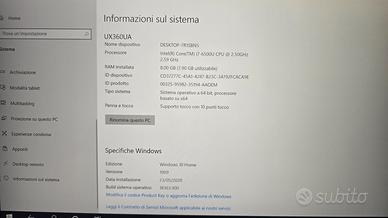 VENDESI COMPUTER ASUS ZENBOOK FLIP ROSA UX360UA CON PROCESSORE I7 E 8 GIGA DI RAM E 476 GIGA DI HD, SCHERMO TOUCH SCREEN. NON SEGNI DIVUSURA E NESSUNA RIGA , ESTERNO DA NEGOZIO. LA BATTERIA DA CAMBIARE PER RIDOTTA AUTONOMIA. VENDESIA 250 EURO.